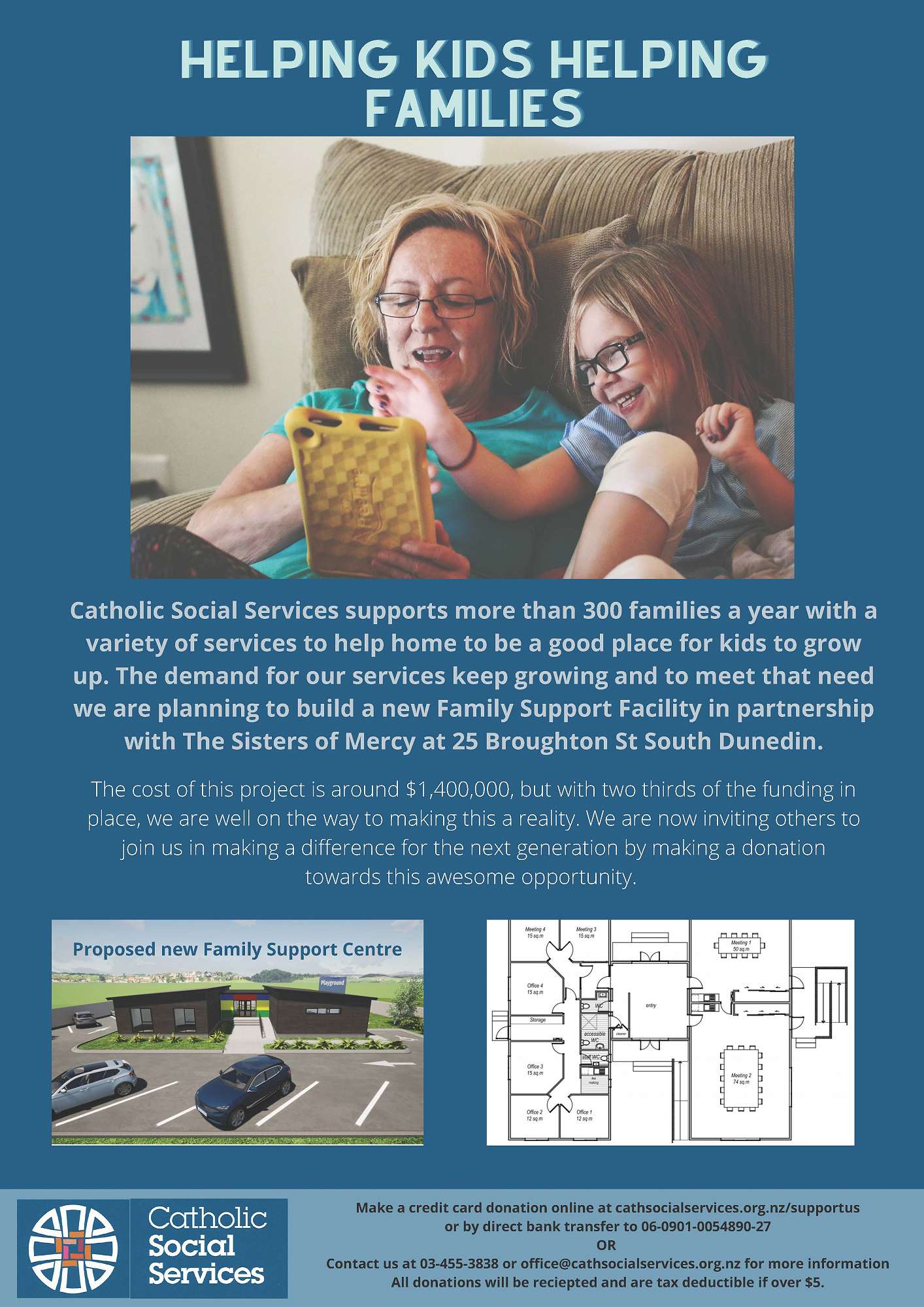 At the bottom of page 3 you will find a video link explaining more about an exciting proposal for a new Family Support Facility in South Dunedin for Catholic Social Services in partnership with The Sisters of Mercy.