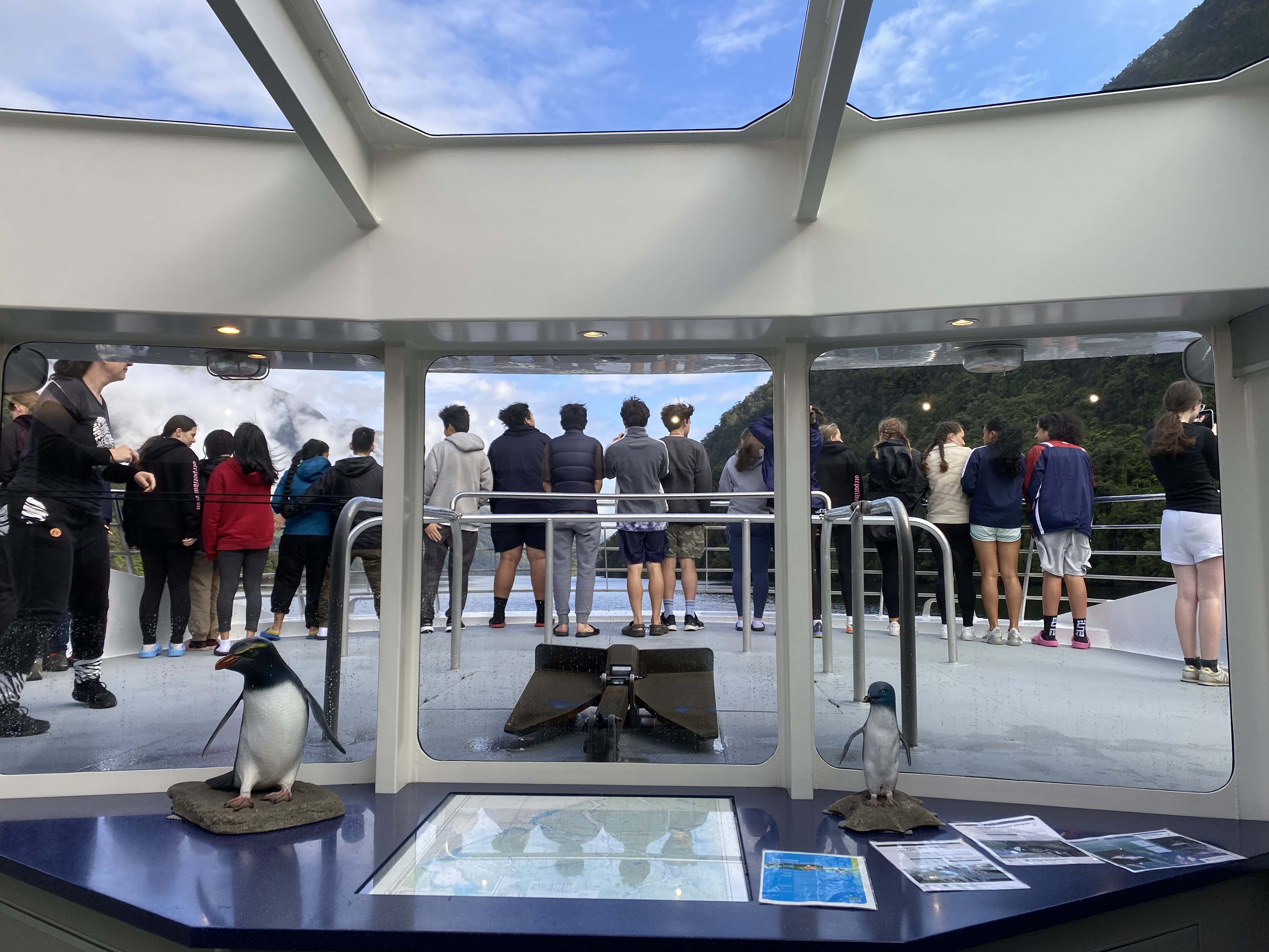 On Tuesday morning the group experienced a strenuous walk in wet conditions up the Hanging Valley track to Kea Rock and Huntleigh Falls. This walk was challenging, but students were outstanding and we all persevered to the top of Huntleigh Falls. We enjoyed fishing in the afternoon. We have been blessed with stunning weather for our Wednesday cruise. The highlight of the week for many was seeing the most beautiful Bottlenose dolphins during this cruise. Dolphins were super friendly and swam in the waves of the boat. The excitement on the boat was indescribable!! After the cruise we went on a walk to Helena Falls – one of the biggest waterfalls in the area. More fishing in the afternoon and we concluded the day with the movie night. There was a lot of fish caught on Thursday and we ended a camp with a three-course dinner, Deep Cove’s got talent and a super fun dance night.