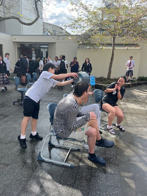 A big shout out to the staff and senior prefects who volunteered to be soaked with buckets of cold water. All for a good cause - Motor Neurone Disease NZ is the charity this year.