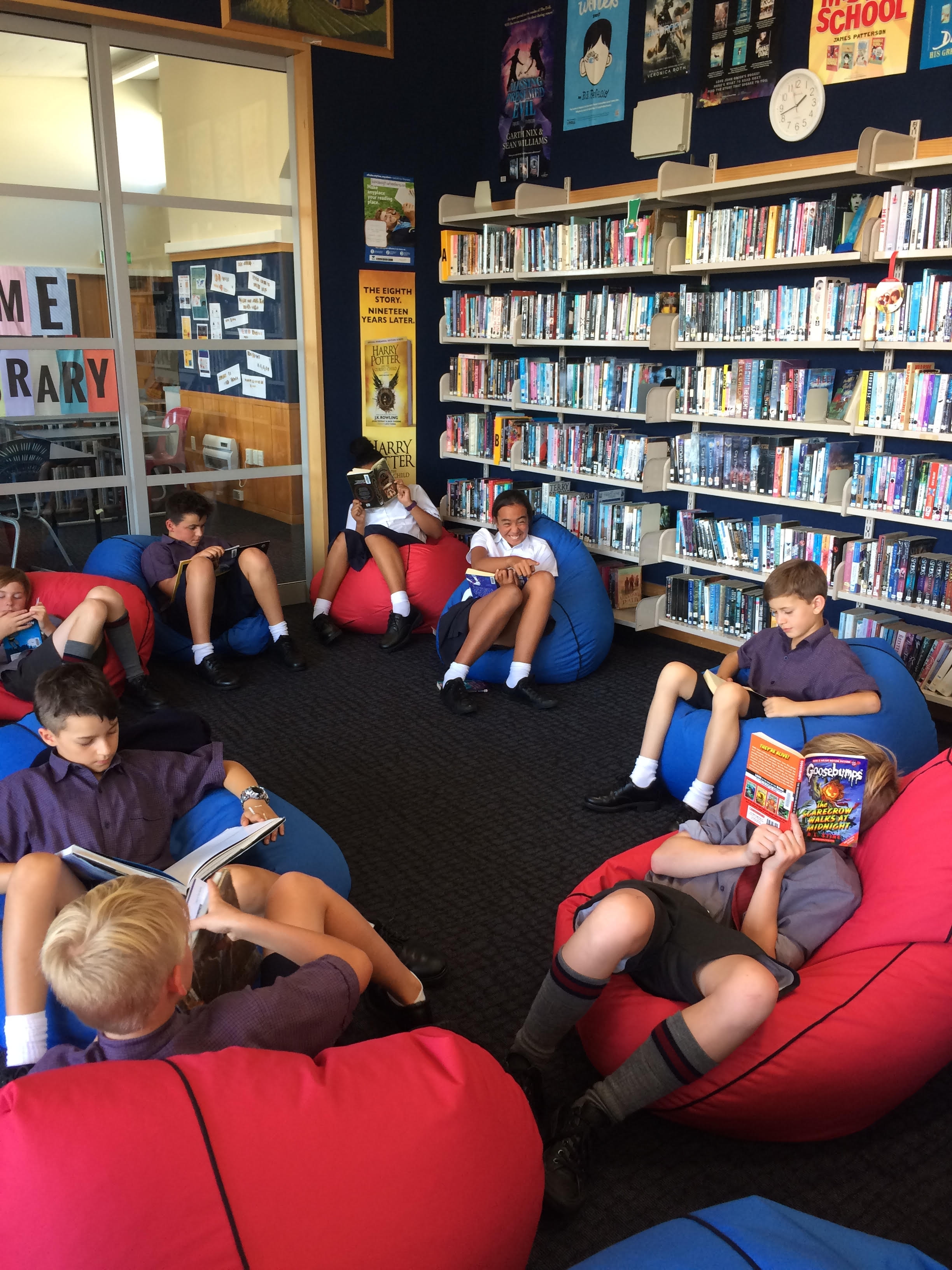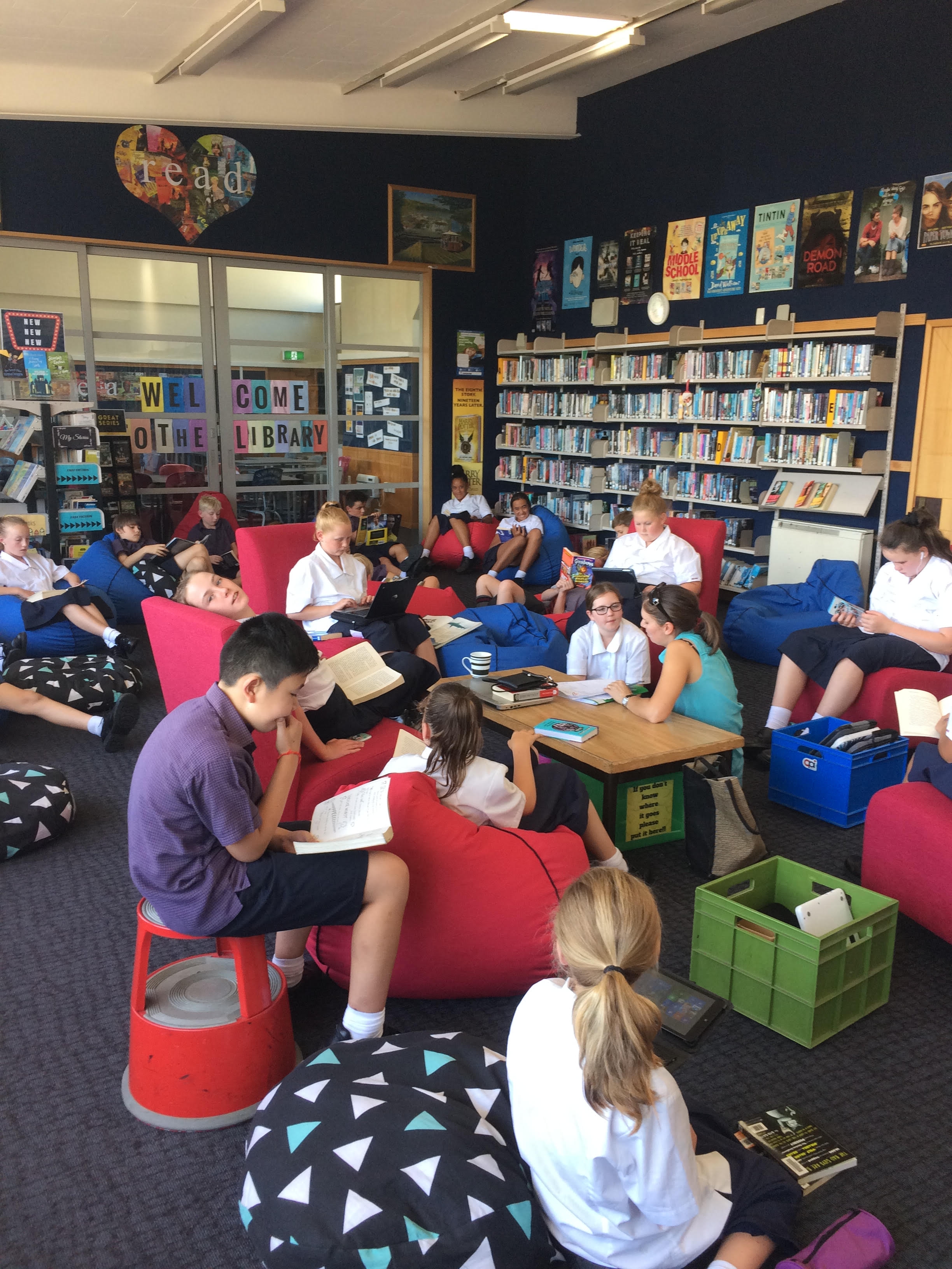 So far we have had all the year seven classes at the library for a least one visit, they have loved the bean bags and the book collection and there has been lots of books checked out! The students have their books for two weeks and can renew them for another two weeks. We send out a reminder email home once the book has been overdue for over a month. We also email reminders to the students and tutor teachers. If the book is more than a term overdue we send an invoice home, this is waived once the book is returned. We always prefer the books to come back!
