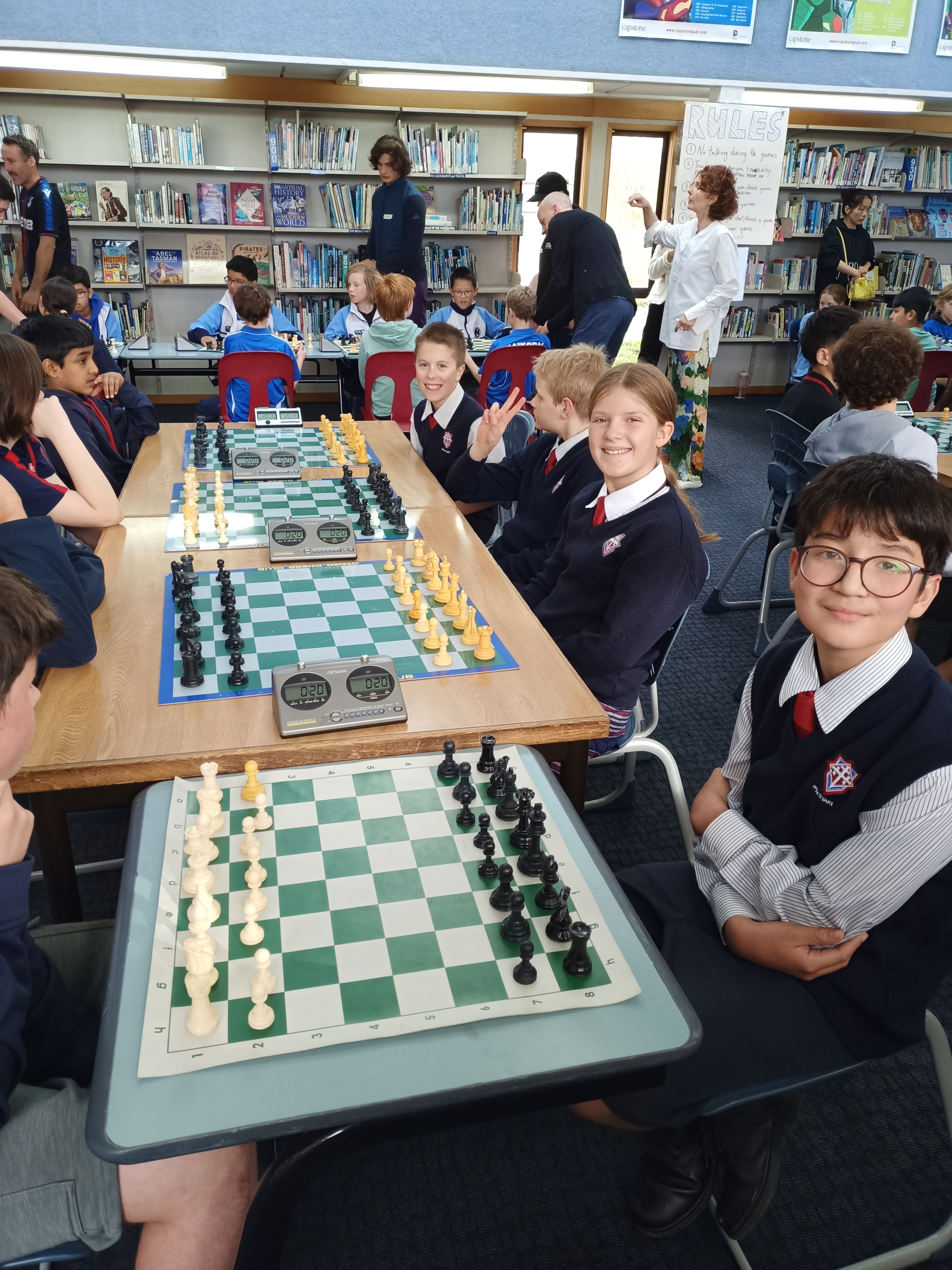 Thirteen teams from across Southland and Otago competed in this annual event organised by the Otago Chess Club. Both Trinity teams scored 3.5 points, the third-equal best match score of the day, although we didn't gain an official award due to the count-back of individual points.