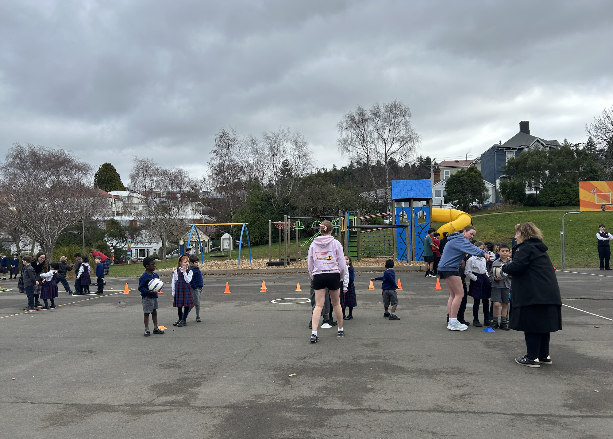 As part of the unit, students work in small groups to plan, prepare, and deliver a series of PE sessions, three for junior students and three for seniors. They design drills, skills-based activities, and small games, and put a big focus on group management and communication strategies.