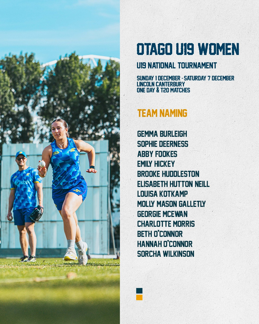 Congratulations to all those selected in the Otago U19 Women's cricket team for the upcoming National U19 tournament in Lincoln next month. The team, to be coached by Southland's Jack Hilton and assisted by Alex Travers, has secured a number of rising stars in the women's game, including our very own all-rounder Emily Hickey.