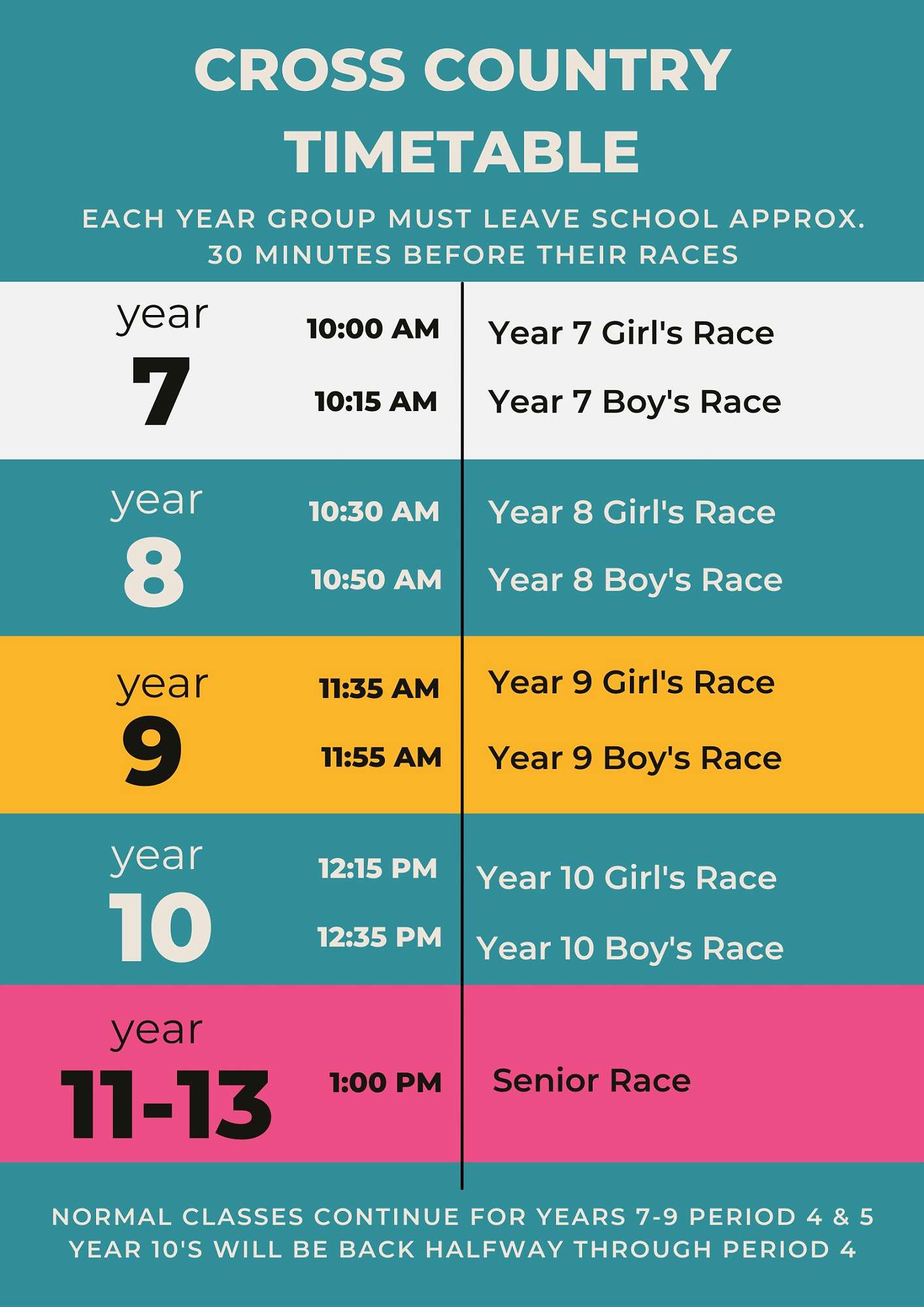 The cross country is compulsory for all year 7-10 students and optional for seniors . Students can wear PE uniform and suitable footwear to school for the day.