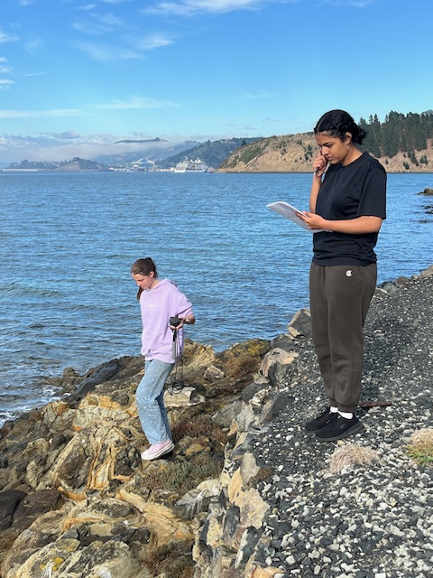 Saturday morning was their first official sampling day. They took water samples from three sites on the Port Chalmers side of the Harbour and then headed back to work in the Mellor Building with Otago University. In the field, they learned how to take visual observations and measurements on water quality, temperature, and salinity and recorded wind, cloud, and temperature measurements with time to appreciate the wildlife around them. The students were then instructed on how to carry out various chemical tests including pH, turbidity, phosphate and salinity levels, and bacterial counts.