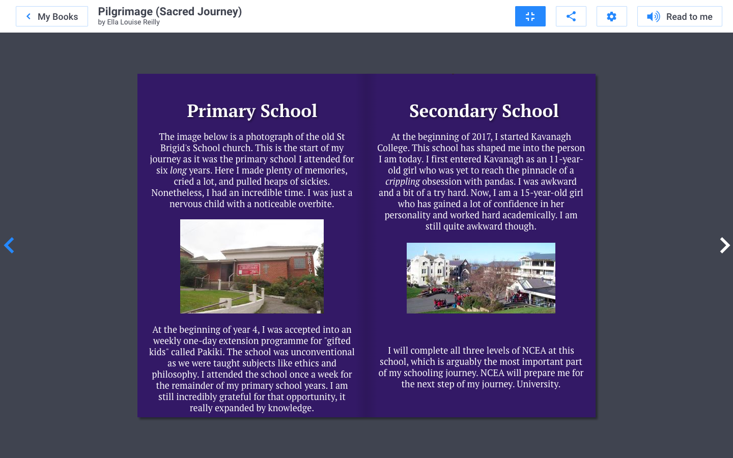10FL made digital books in RE about their own 'Pilgrimage' (Hikoi Tapu - sacred journey) from primary school to Kavanagh after studying the significance of Pilgrimages in The Middle Ages.