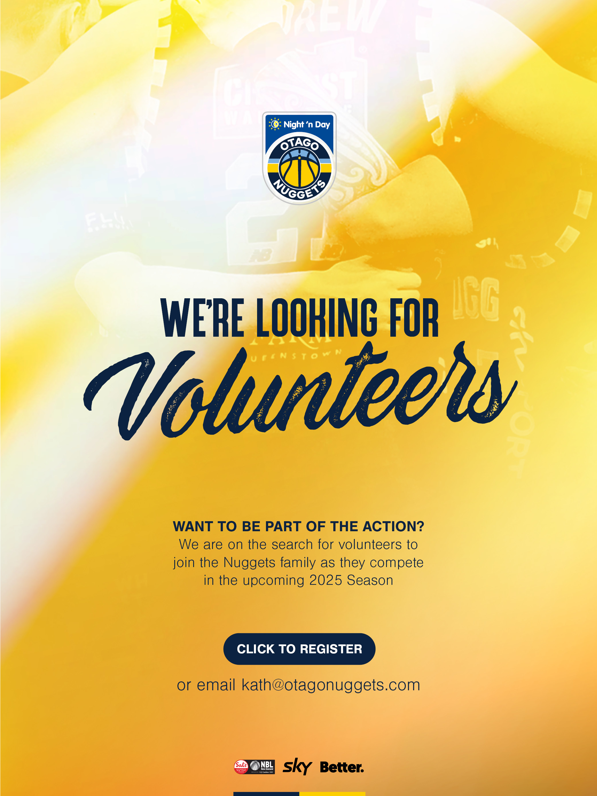 The Otago Nuggets Basketball Team is looking for volunteers for their upcoming 2025 season