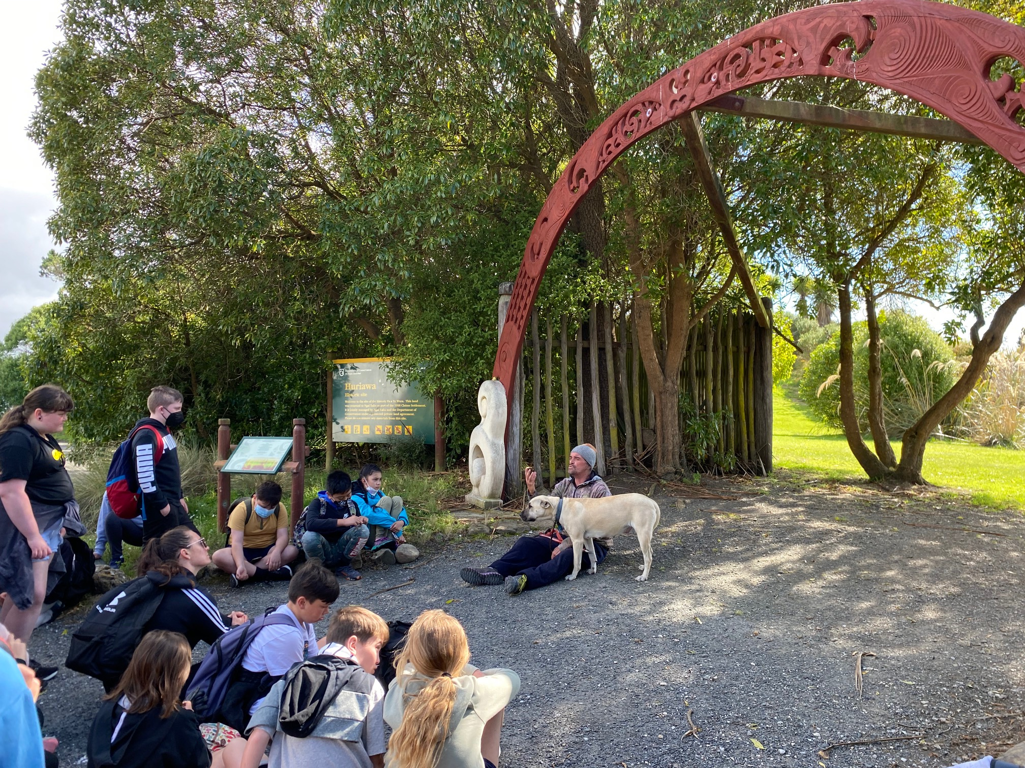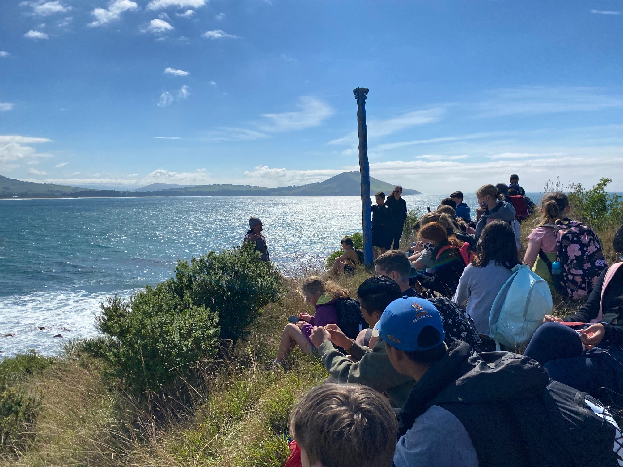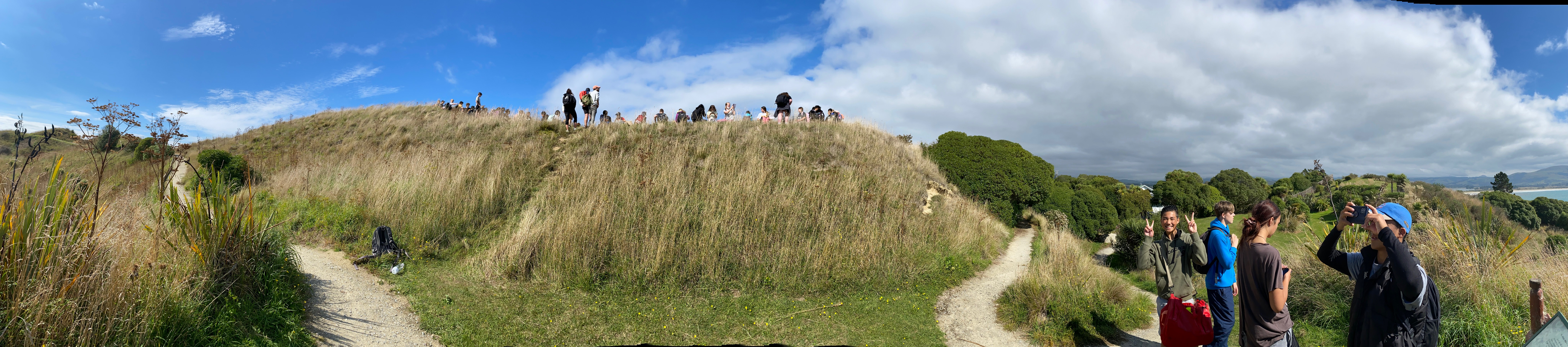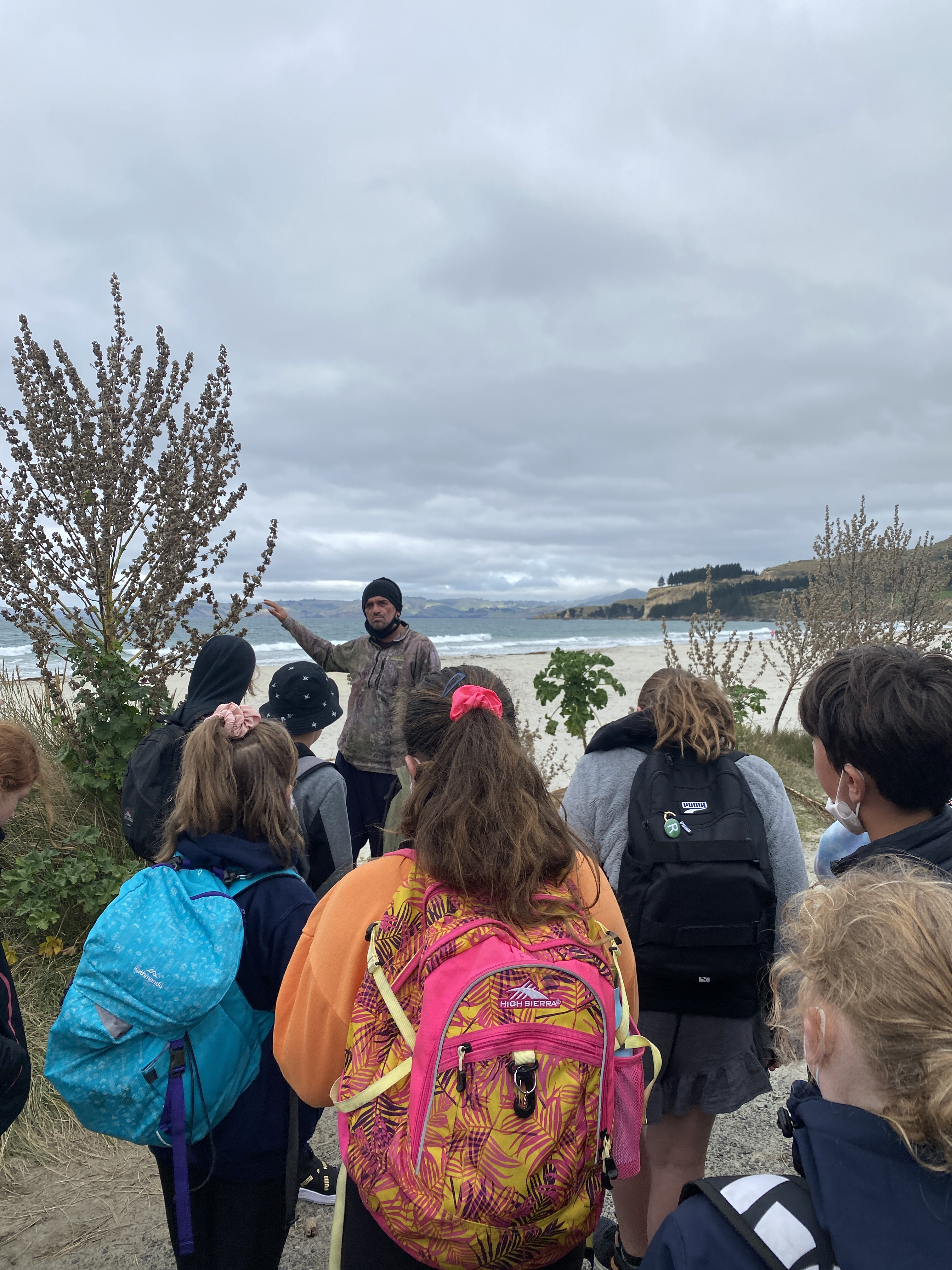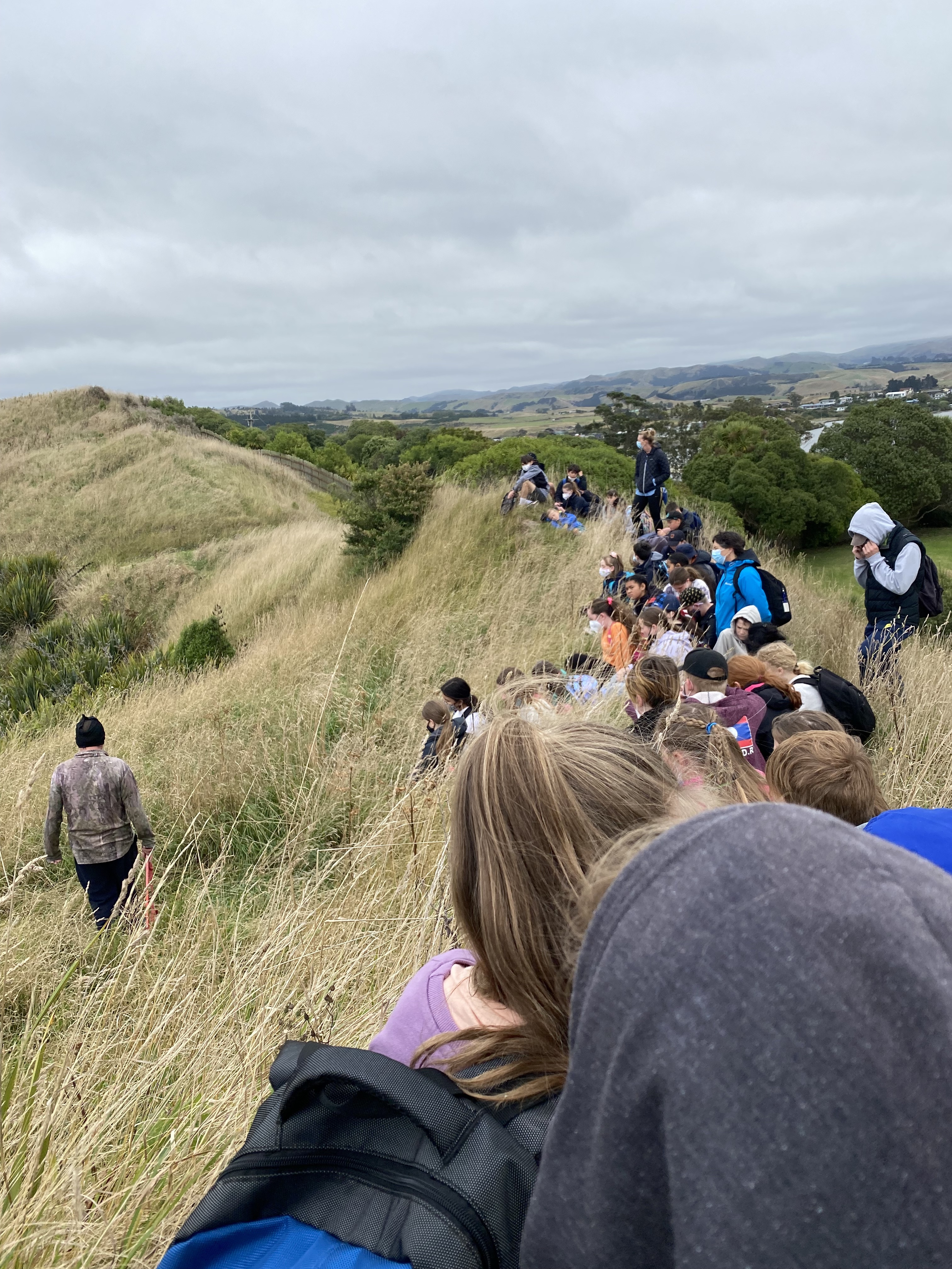 We were told that we would hear some unforgettable stories about the history of Huriawa Pā, from a master storyteller, Kane. We were told that we could arrive in mufti, which as you can imagine, bubbled quite an excitement. When we arrived, the first question that was asked of us was the difference between a pandemic and an epidemic that hooked us into a world of stories, one was a tale of sorrow, the epidemic of the measles, how they spread and killed many Māori and at Kaka Point only 8 people survived. The people that remained buried, the adults then the teenagers on top then the babies. It was a very sad day.