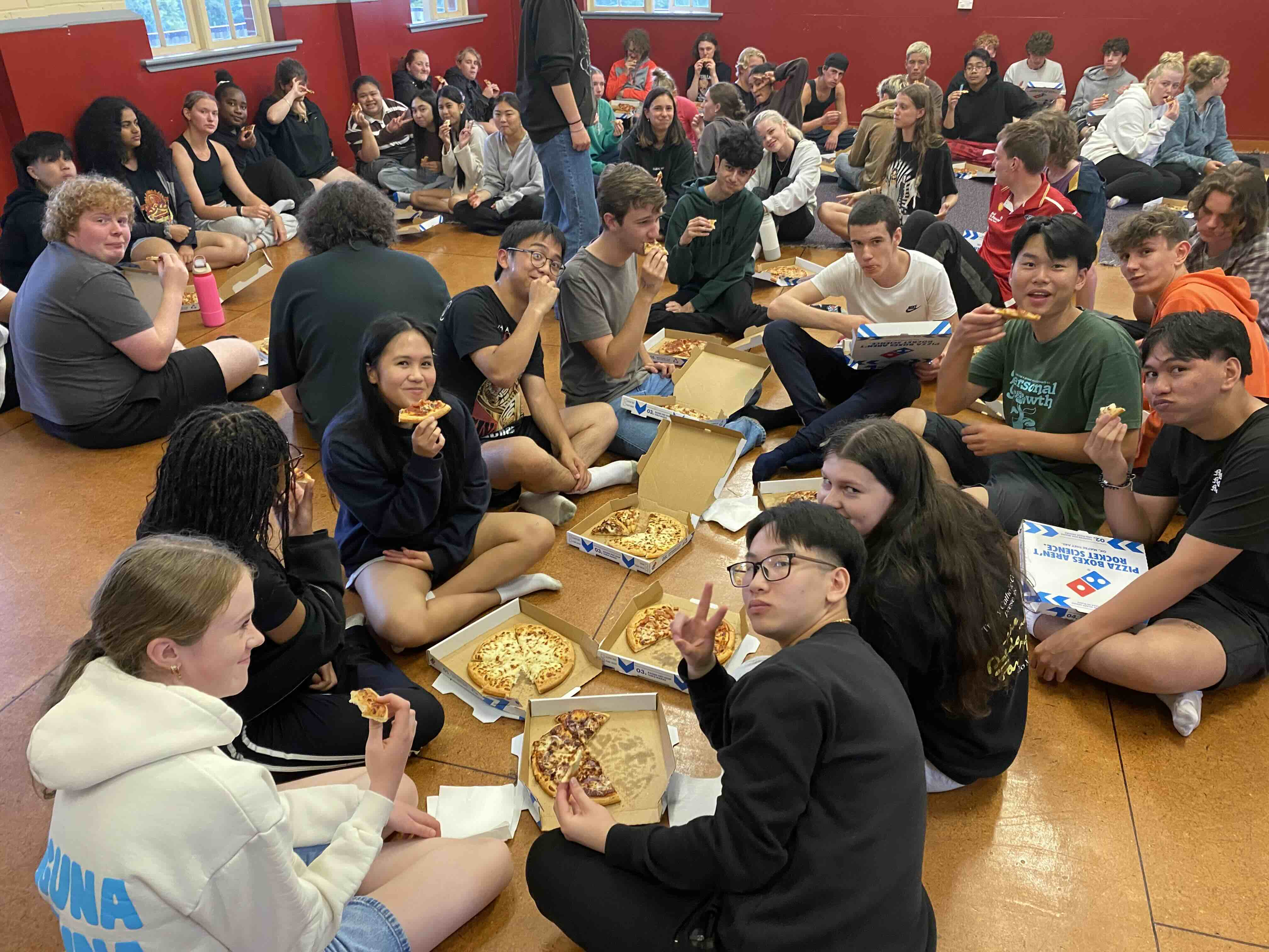 On Saturday, we all spent the morning at the markets, followed by a picture challenge around Dunedin which needed to include a “Laughable moment” “Most shocking moment” “Best landmark” “Spiritual photo” and “Best team photo”. After everyone had gone round town getting their photos, we headed to the airport to pick up the students from St Peters College. After bonding with them and participating in another workshop, we were lucky enough to be taken to the rugby game on Saturday night. After the game, we headed back to school to play some more intense spotlight and finished our night off with a liturgy, reflection and affirmations to one another.