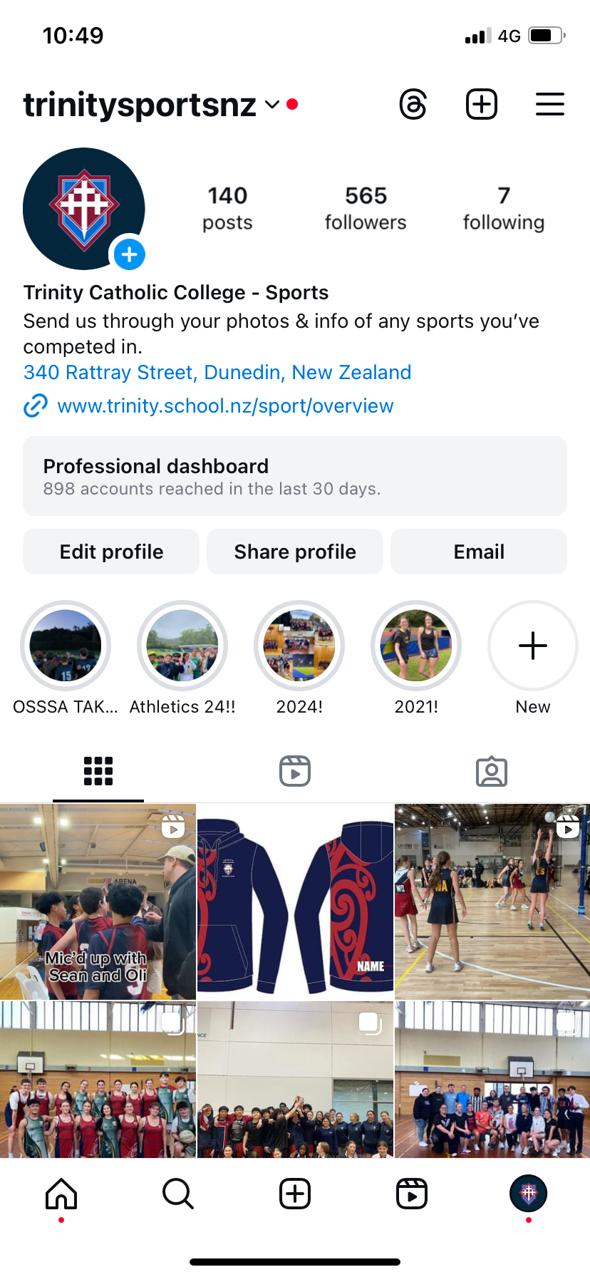Trinity College Sports Instagram Page