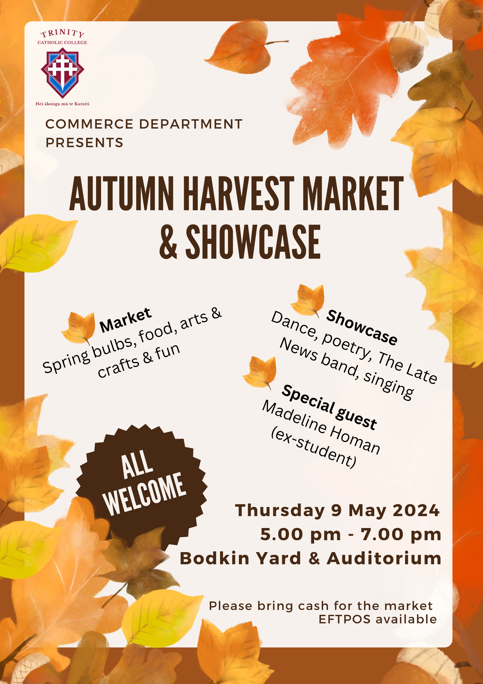 As the weather forecast promises a delightful evening, we invite you to join us onsite at Trinity to enjoy the Autumn Harvest Market & Showcase event. Our students are excited to greet you at market stalls and showcase performances.