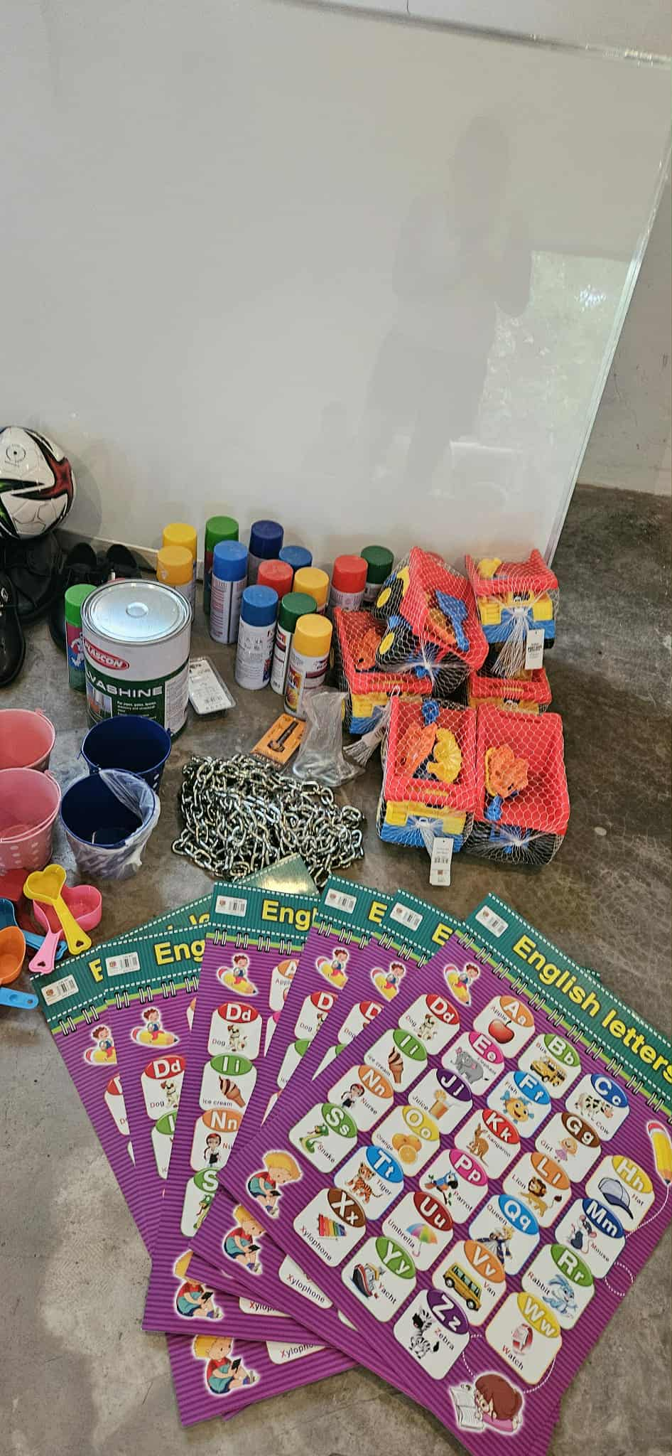 Along with money contributed from St Peter's College in Gore, a playground complete with monkey bars, sand pit and seesaw is under construction, and the children have been thrilled with their new whiteboard (instead of an old blackboard), sports gear and sports shoes, learning resources and toys for fun.