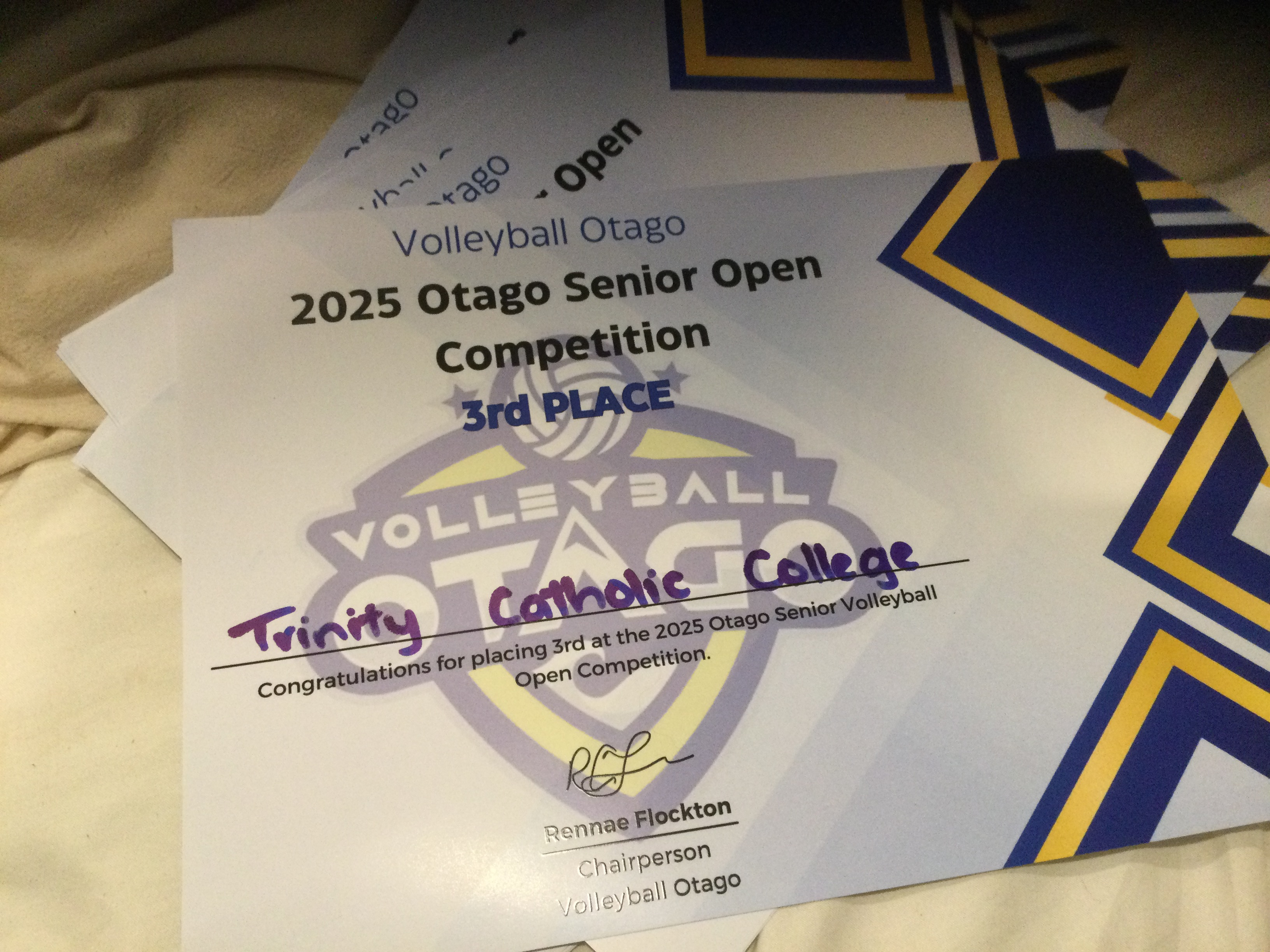 The Trinity Girls Senior Volleyball Team attended the Otago Senior Open Competition over the past weekend and took out 3rd place after some great wins. The two day tournament was held in Dunedin, with 10 Division 1 girls teams vying for a place on the podium. Our Trinity Girls played so well across the tournament, in preparation for the Otago Championships tournament coming up soon and the Volleyball National Volleyball Champs in March.