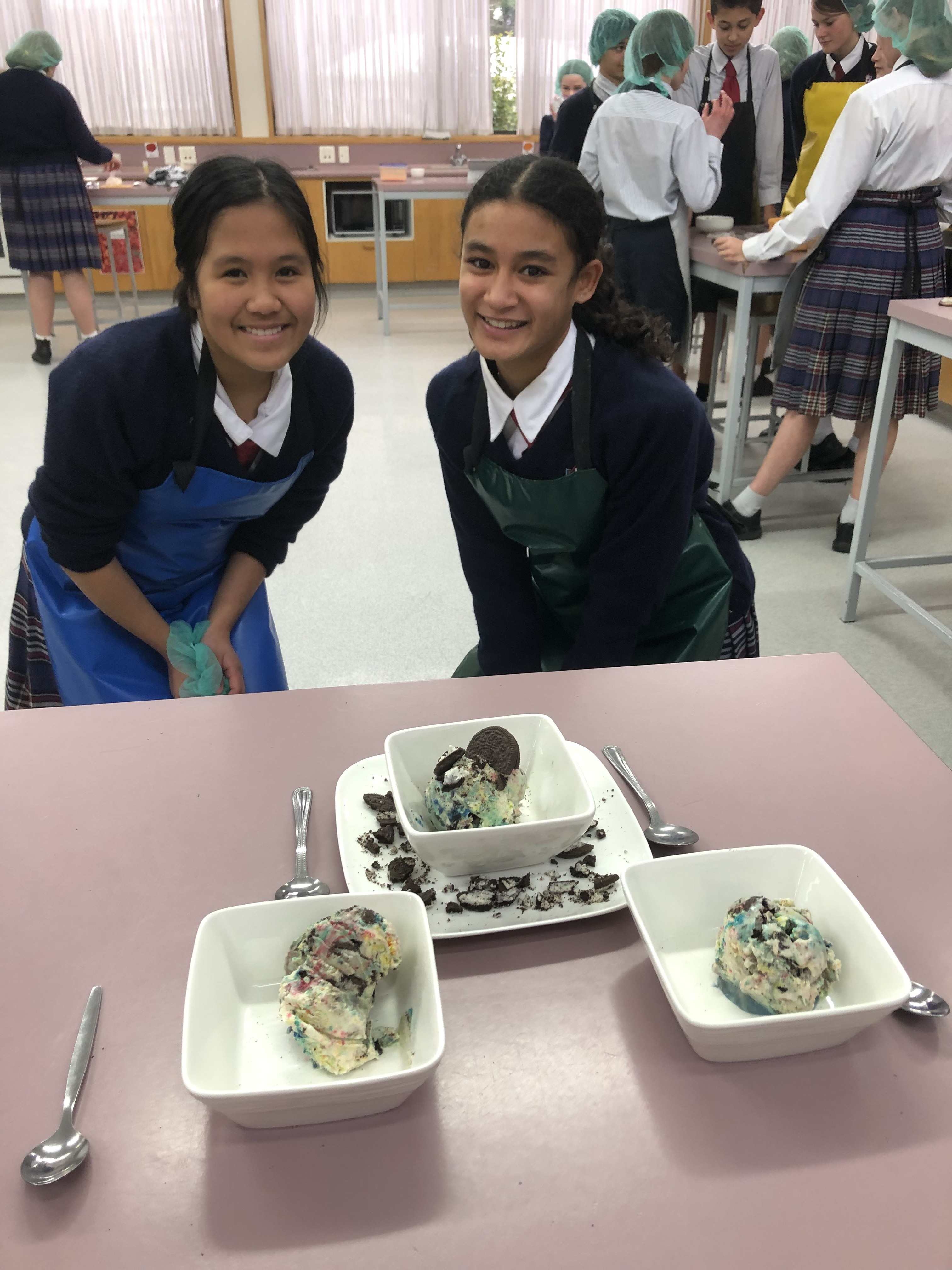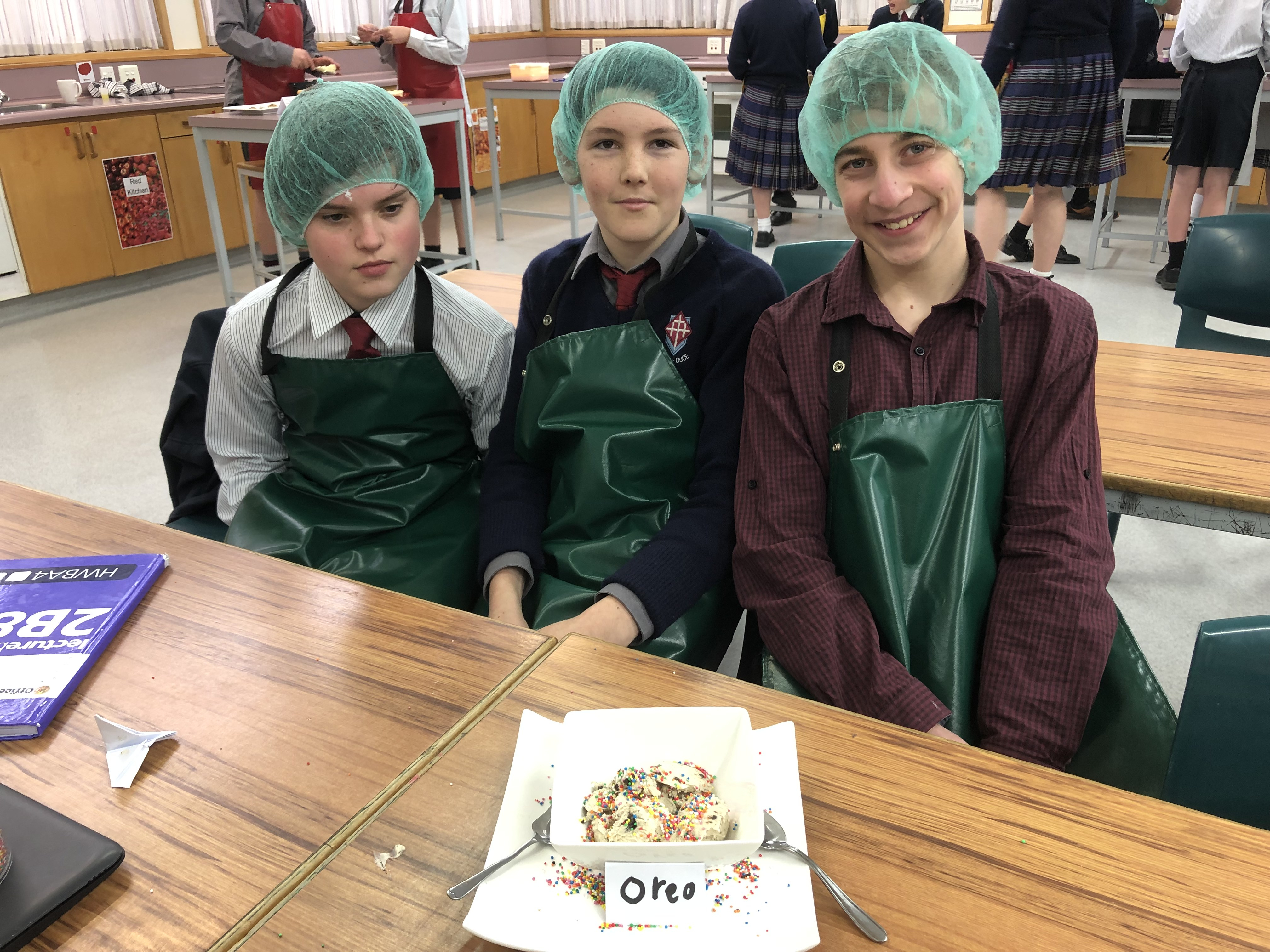 The students had to design a product then make changes to refine it into a final product. We were very excited to have the Year 7-9 Deans, Mrs Harris and Mr Haig, judge the final products this week. The final products included, strawberry, cookie dough, oreo, chocolate, vanilla and fresh orange ice creams.