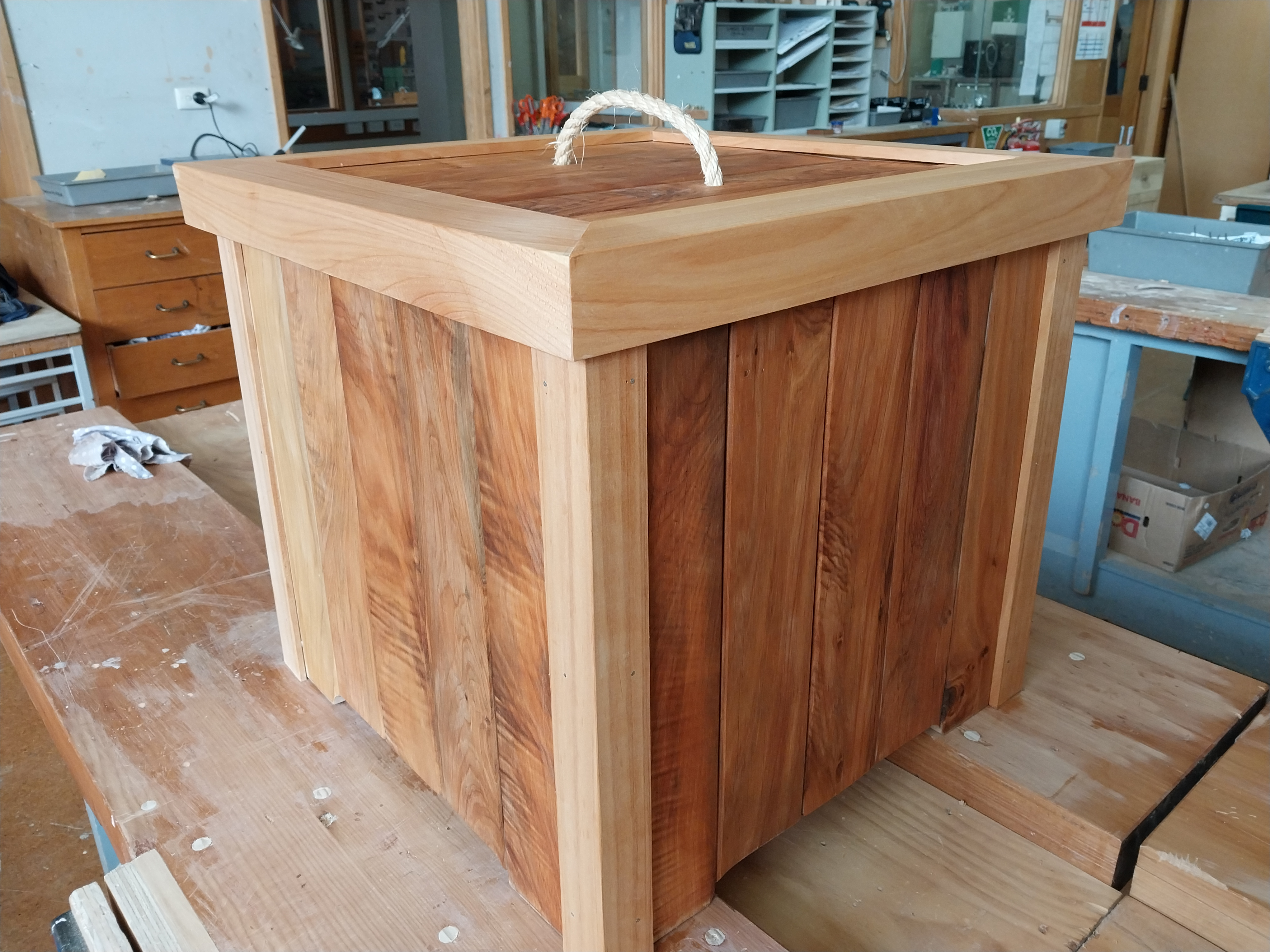 Monty chose to create a storage box for potatoes and was very proud of the outcome.