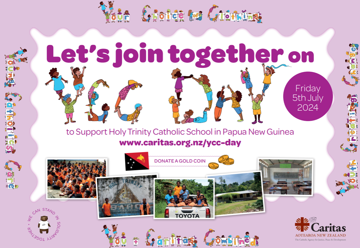 As an add on to this, we ask if you could bring along a gold coin donation for this, as Friday is YCC day. YCC Day is a special event where Caritas joins forces with Catholic schools across New Zealand. Together, we stand in solidarity to support a good cause, raising funds and awareness for a selected focus school.