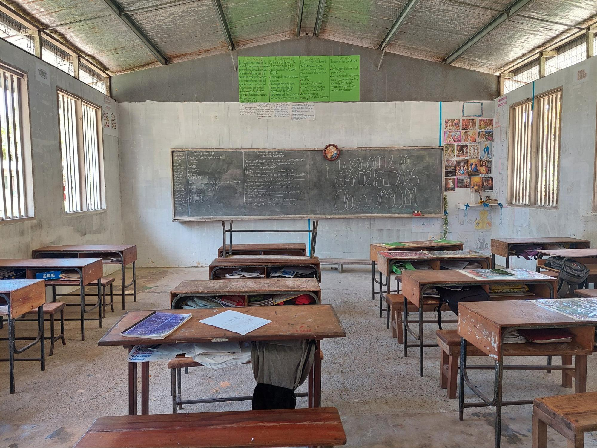 This year Caritas is supporting Holy Trinity School in Papua New Guinea. This school is in desperate need of vital classroom equipment such as desks and chairs, as well as resources like books and writing materials as you can see in the pictures.