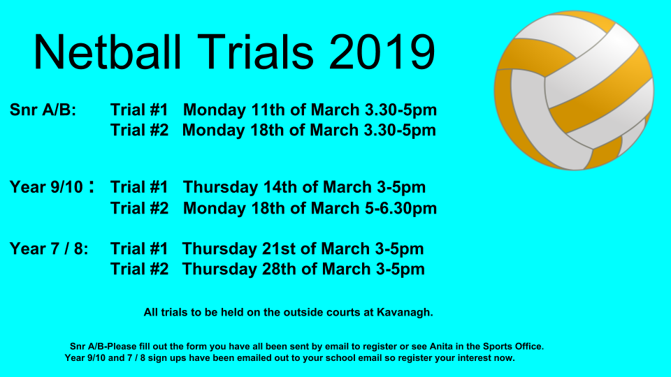 We will have three preseason sessions before heading into trials on the 11th of March. Any seniors wanting to trial need to come along. Year 9 and 10 netballer's are also welcome to come along to increase their fitness before the netball season starts.
