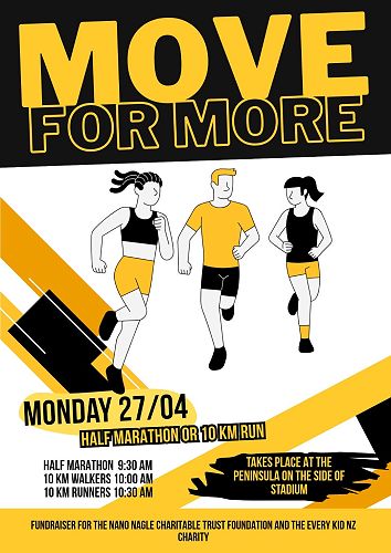 Move for More is to support two charities that work to provide opportunities for young New Zealanders - Every Kid NZ and the Nano Nagle Trust. Our goal is to raise $2500 for each charity.