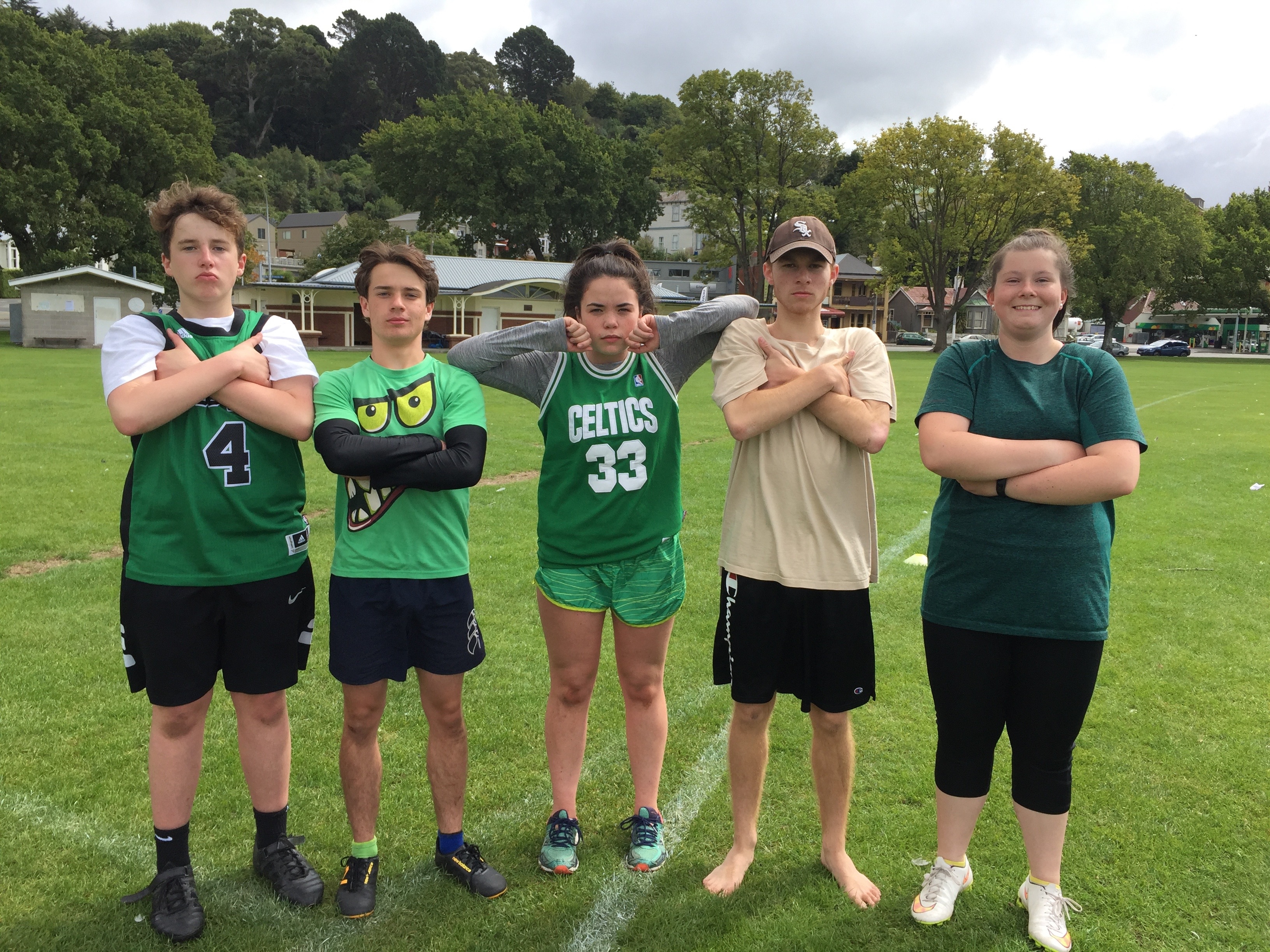 Six teams from the two classes competed for the Championship of Year 11 PE in Touch Gridiron last week. The teams played five games and a playoff game at the Oval. The game is played on a Touch field with modified rules from American Football. The focus of the module is on developing interpersonal skills in a team environment. The Crispz came out overall winners - Gabe Gallagher (Coach), Bella Wadsworth (Captain), Emily Kerr-Bell (manager), Shea Webb and Jacob Tutaki. Well done to all players for a very successful day.