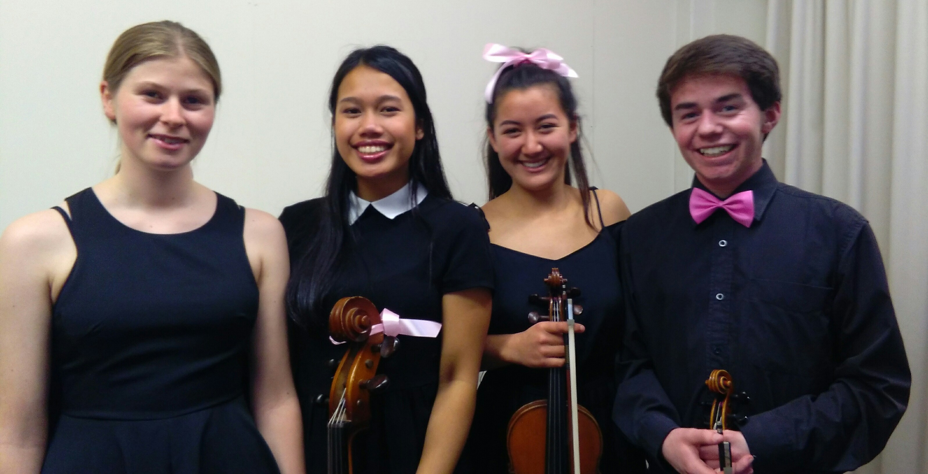 Sophelia Hook's string quartet - Ken and the Barbie Dolls - performed Bagatelles by Antonin Dvorak. The players were a mix from schools as follows: Sophelia Hook (violin Kavanagh College) William Brundell (violin Bayfield High) Nisa Jaafar (cello Columba College) Clare Cocks (piano Columba College). This group were selected for final call back as one of eight groups in the District round, and were awarded Highly Commended.