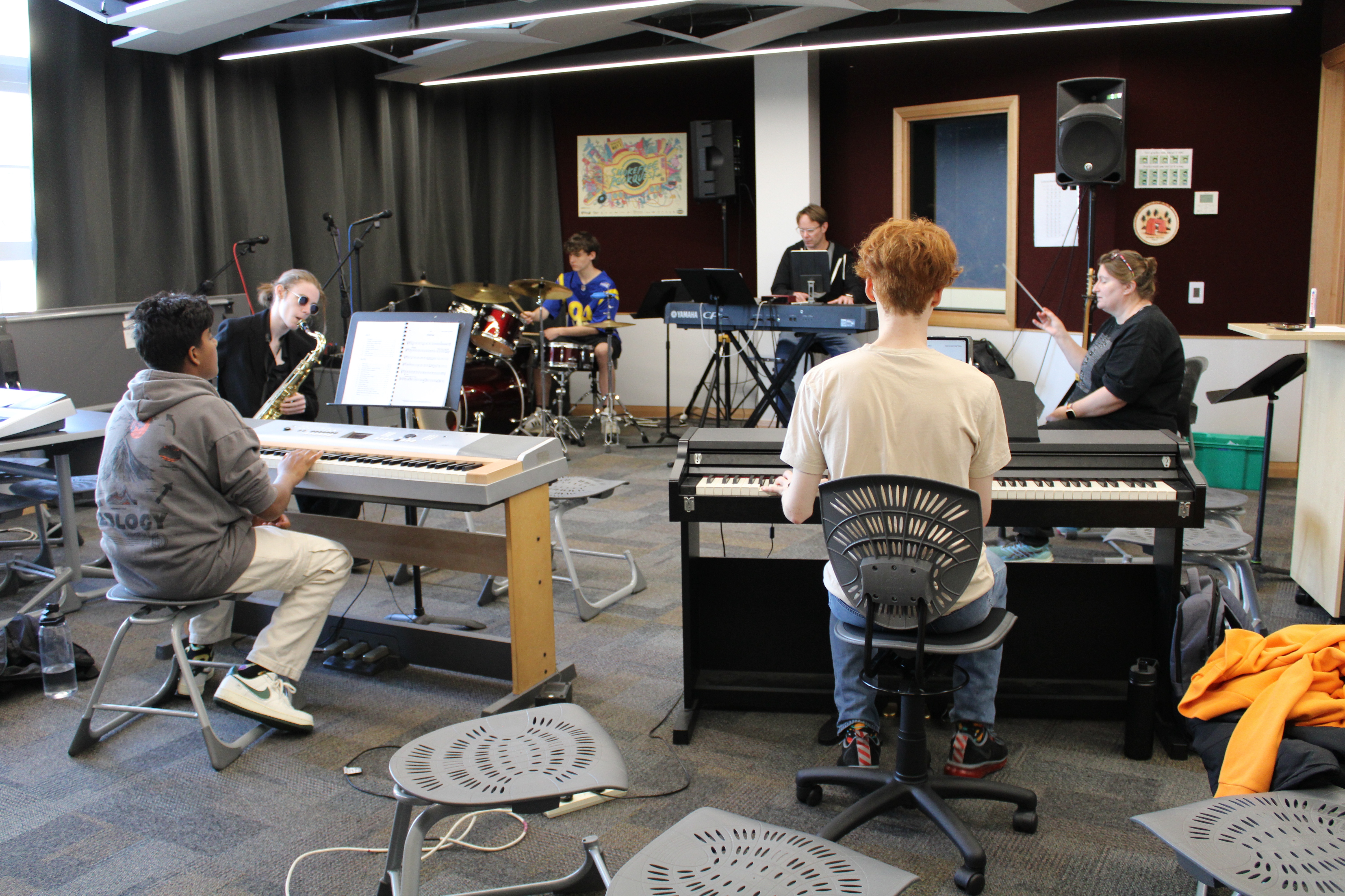 The show band will provide live music throughout Joseph and the Amazing Technicolor Dreamcoat and, because the whole show is sung, the musicians will essentially have no breaks and will be playing the whole time. The band comprises school musicians as well as a few adults and is conducted by Musical Director Georgie Watts. The show band is currently practising by themselves, but they will join with the cast in Term 2.