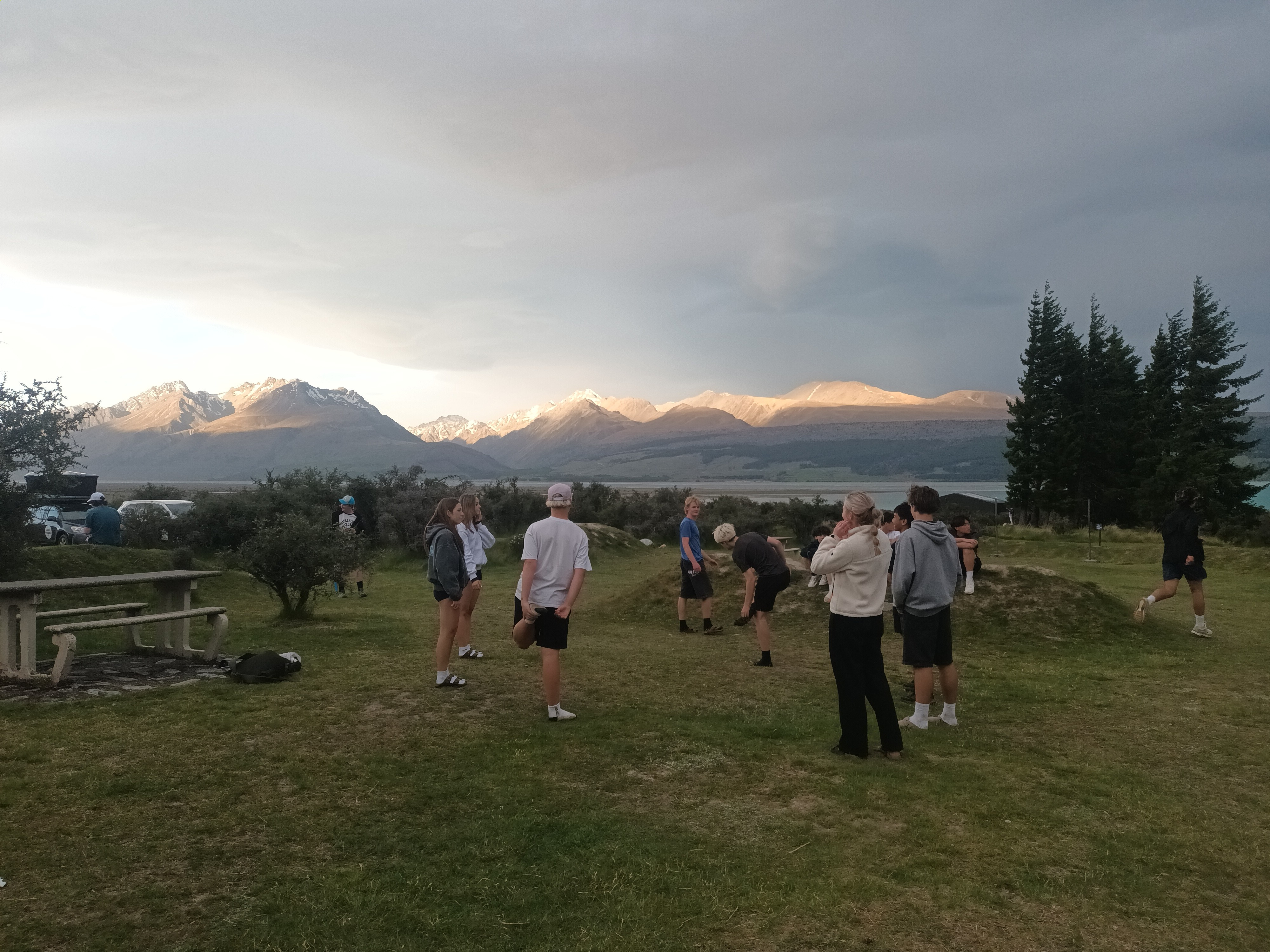 We were greeted with an impressive lighting and thunder storm in the morning that shook the windows of the common room lounge! Nevertheless, we stayed confident that the weather would clear. Right on schedule, we were greeted with sunshine and blue sky as we entered the Tekapo hot pools. But the best was yet to come as the group still had their hike to complete! The group challenged themselves to a walk up Mt John. The first third of the track was lovely but very steep, and so it tested our physical strength. At the first lookout, everyone thought they were nearly at the top, but soon realised how deceptive the hill was! It seemed as though the track would never end, and so it tested our mental resilience. At the summit, we weren’t able to celebrate for long as wild wind threatened to topple us over! So this tested our courage. Finally, as we reached the treeline, and were in the shelter and shade. It was all downhill now and everyone was able to reflect on their hard work and effort over the journey. We finished with a final dip in the hot pools and some outdoor games before returning to camp for our last evening. The group completed the day with a classic game of Spotlight. During our journey home, we celebrated our experiences with a fun ‘prizegiving’ with some certificates being awarded such as ‘Best Tent’, ‘Best Stone-Skipper’, ‘Most Polite Camper’, and ‘Camp GOAT’ amongst others.