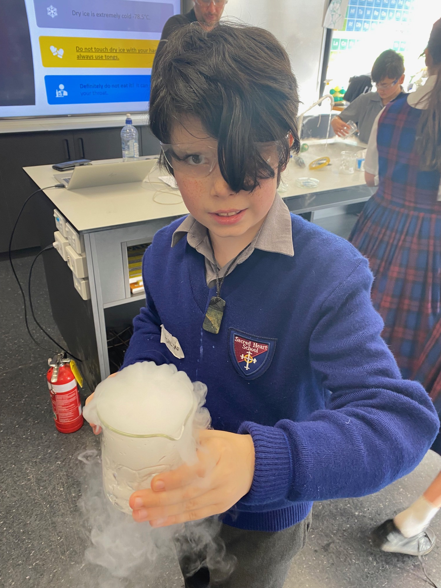 In the afternoon science sessions, the students enjoyed learning about the chemistry of dry ice while conducting a range of melting and combustion experiments. Mrs Christine Donnelly, Mrs Nicky Bell and Mr Jeremy Morgan from St Mary's, Sacred Heart and St Peter Chanel respectively did a wonderful job supporting their ākonga (students) in their learning.