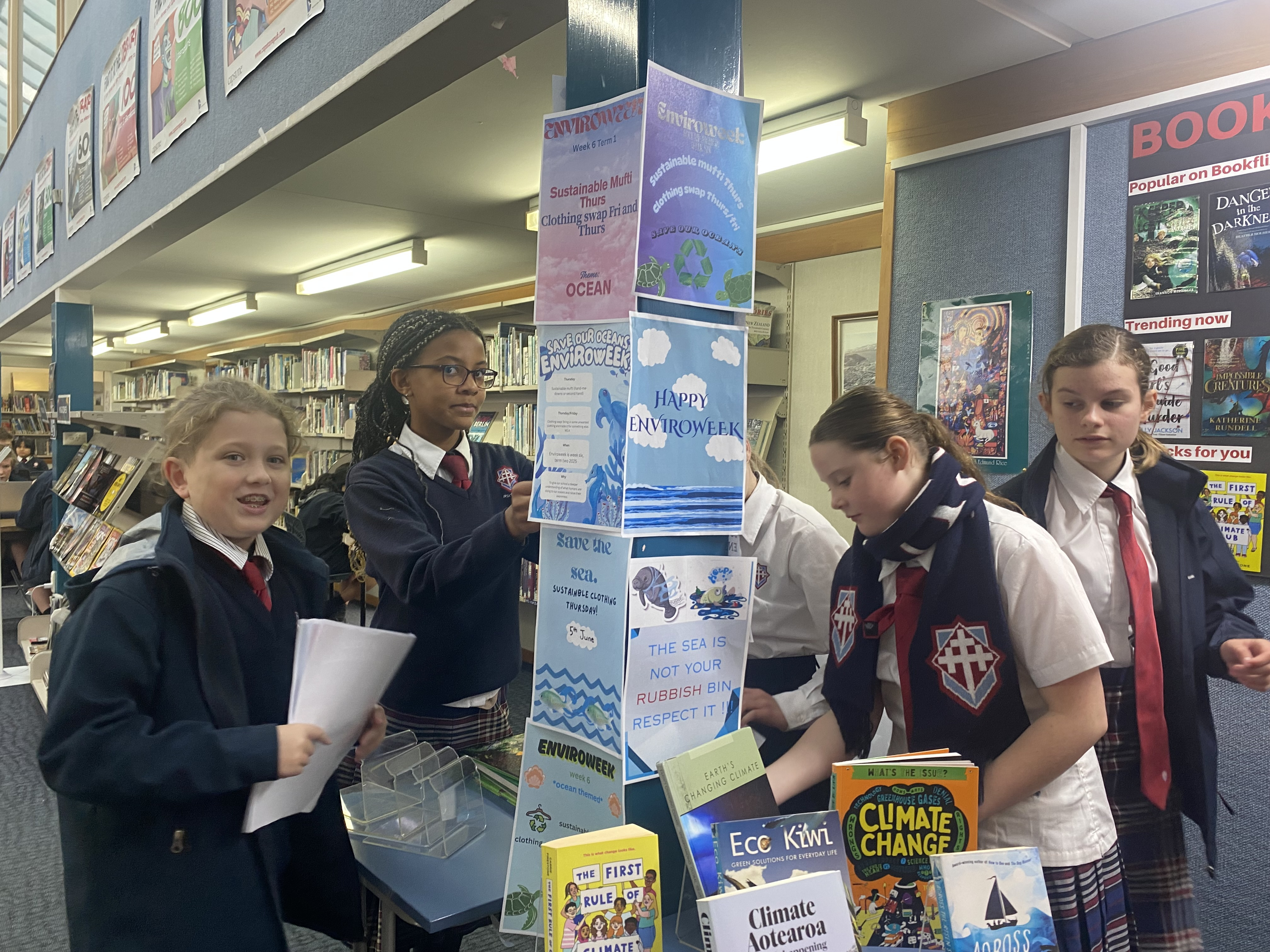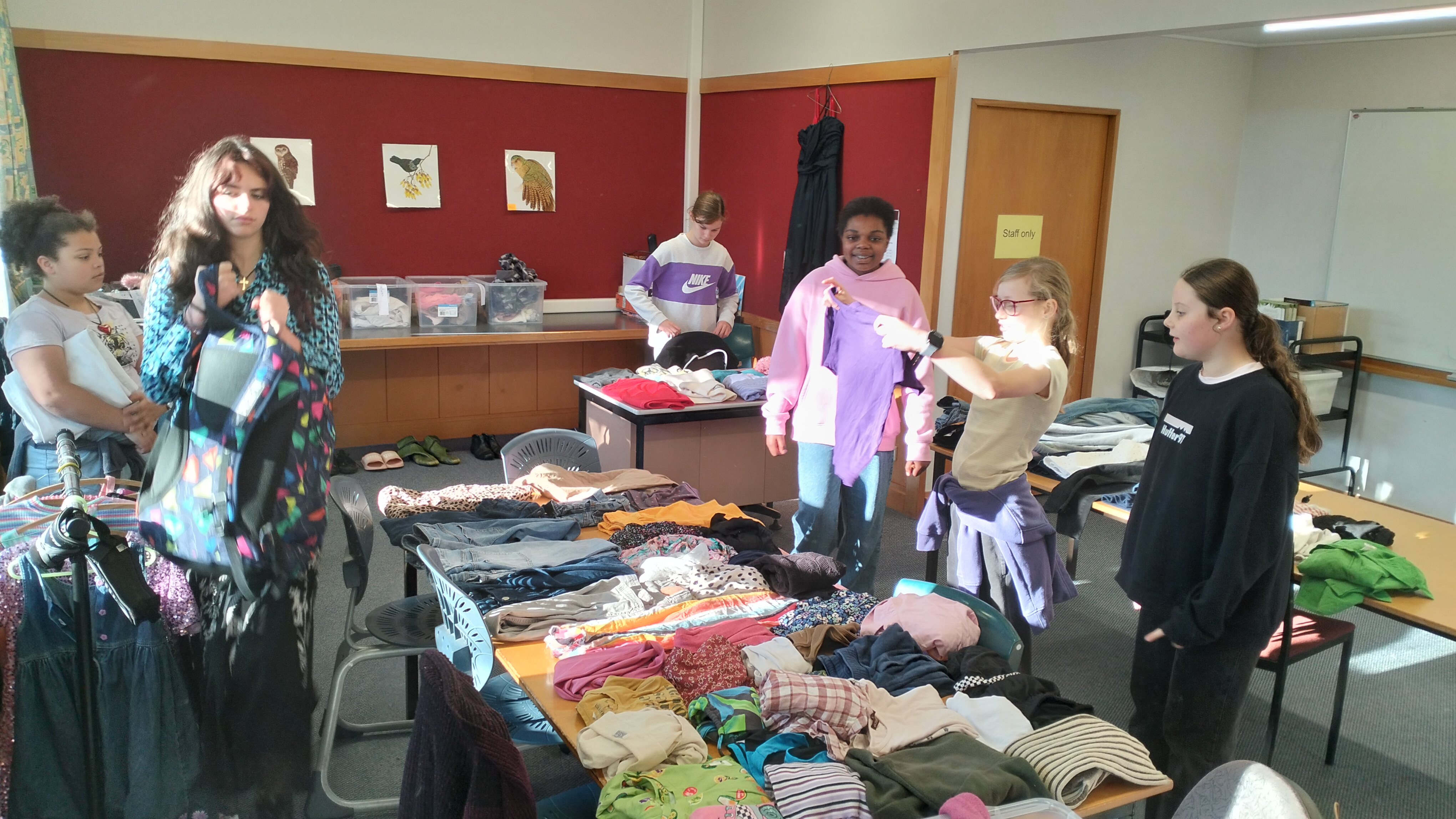 Attached are some photos from the events held last week at Trinity for Enviroweek. Congratulations to Eva Marslin and Neve Montgomery for winning the colouring competition. The leftover clothing from the clothing swap was donated to St Vincent de Paul who were very grateful, as their shelves were previously looking a bit bare!! Also thank you to all who donated to the Yellow Eyed Penguin Trust!