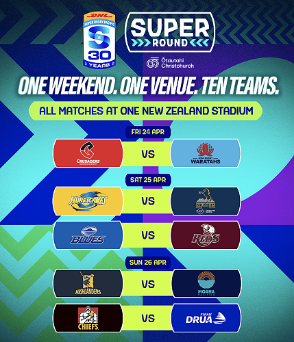 The Crusaders will play the opener on Friday night against the NSW Waratahs and the Highlanders will clash with Moana Pasifika on Sunday afternoon. The team will be attending this game with coaches, teachers and whānau. It will be the first time the Super Round has been held in Aotearoa New Zealand.