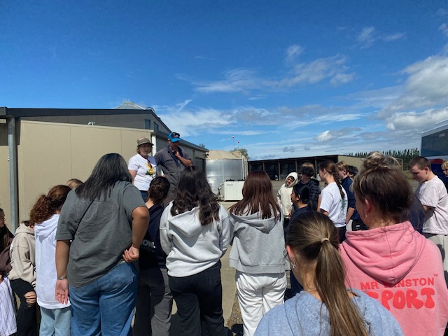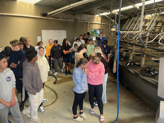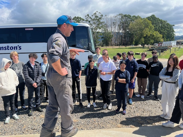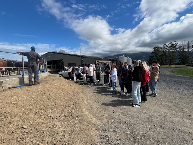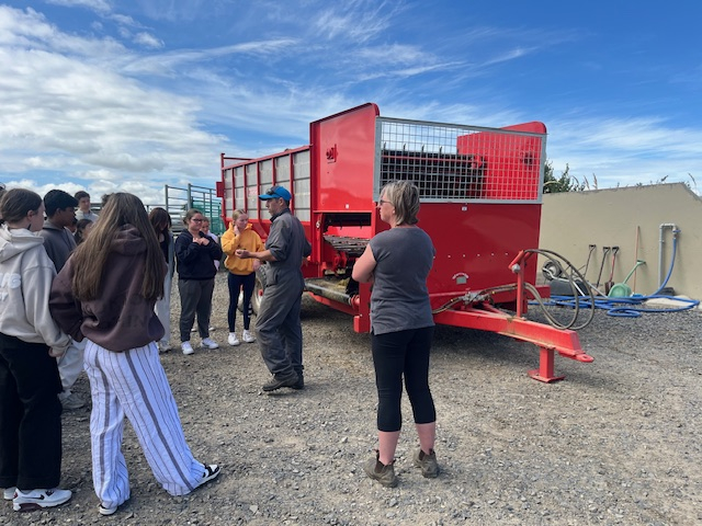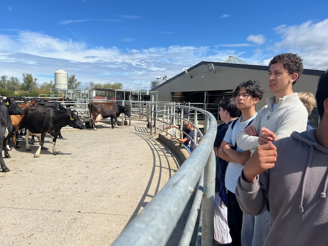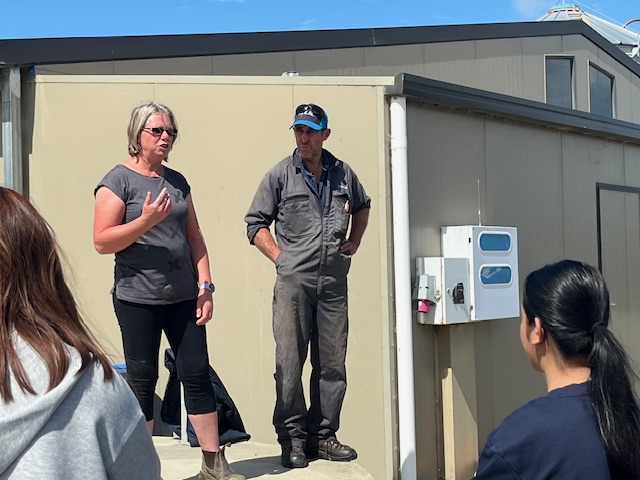 After lunch in Mosgiel, we headed to Huntly Road Dairies in Outram. Anne-Marie and Duncan Wells are award-winning dairy farmers, and we had the privilege of hearing their business stories firsthand. They emphasized the pivotal role of teamwork, highlighting how collaboration and mutual support have been critical to their success and why a sound financial plan, excellent animal welfare, sustainability, and innovative practices are key to running a dairy farm. The visit left a lasting impression on us, showing a successful dairy farm and a model of excellence in business management and agricultural stewardship.
