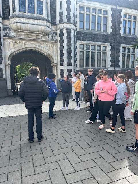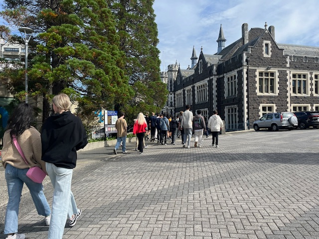 The next stop was the Toitū Otago Settlers Museum, where the students carried out research. Then, we headed to the University of Otago for a campus tour. Our first stop was the Commerce building, where we spotted Tobias Devereux (ex-student). Tobias spoke to the students about "scarfie" life and gave them a few pointers. During the tour, we were also welcomed by Dr Michelle Schaaf (Senior Lecturer in the School of Maori, Pacific and Indigenous Studies and Associate Dean of Humanities) and Telesia Lei-Mata'afa (Division of Humanities Support Officer), who are both alumni of Dunedin Catholic Education. They spoke about the relevance of incorporating the humanities into tertiary education, learning new things, and belonging to a community.