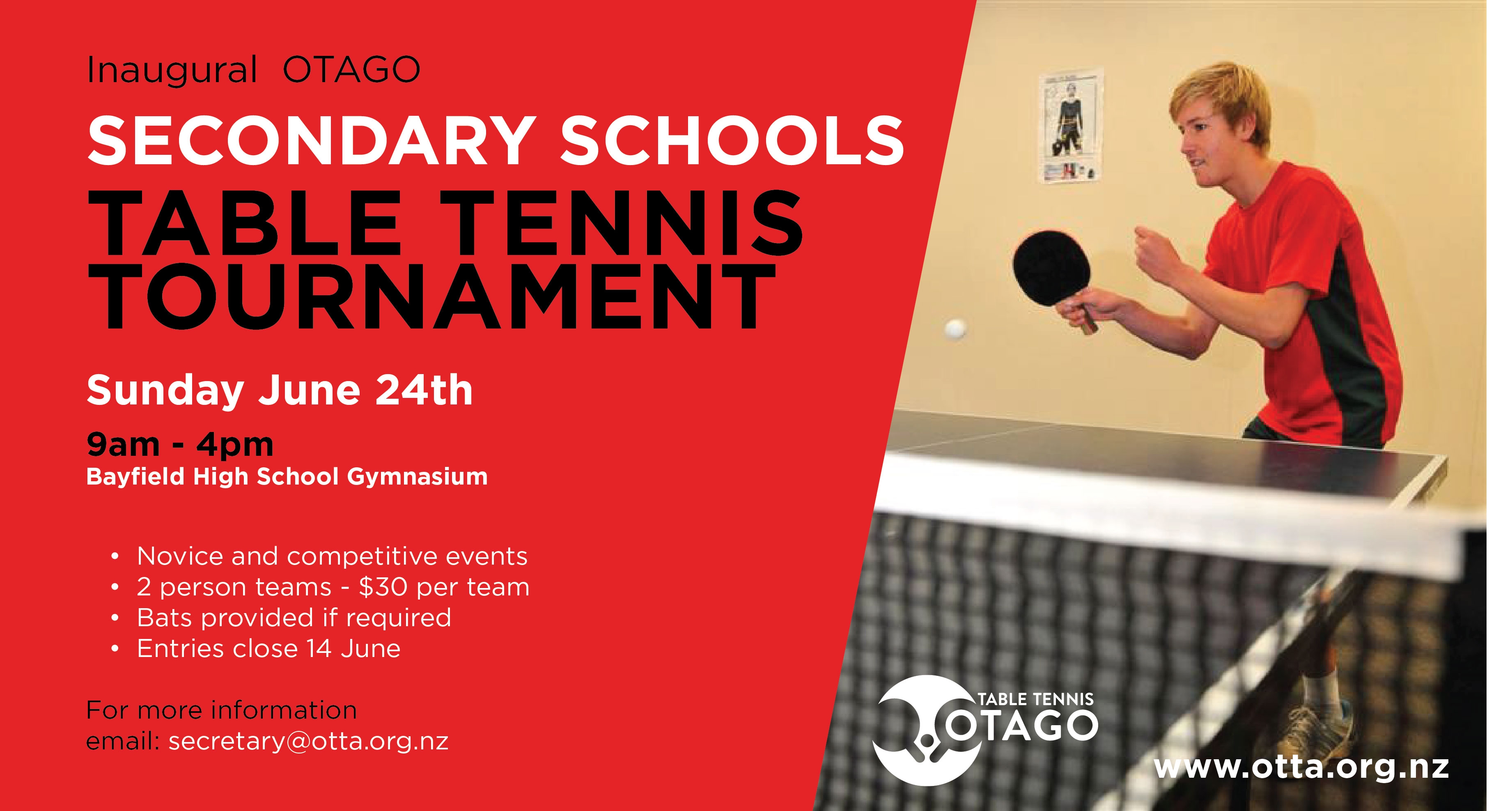 SECONDARY SCHOOLS TABLE TENNIS TOURNAMENT Sunday 24th June, 9 am - 4 pm Bayfield High School Gymnasium
