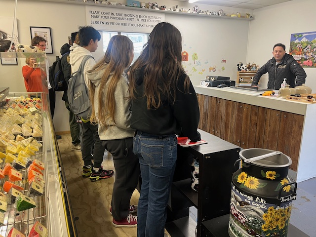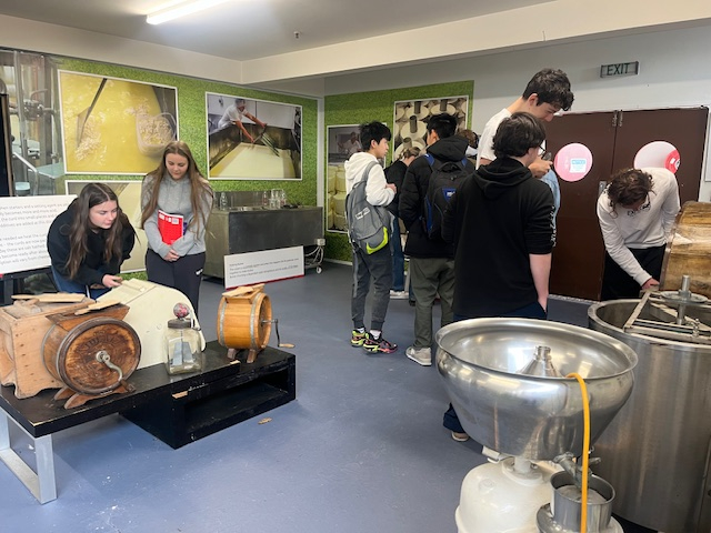 This small business, boasting three full-time and several part-time employees, plays a crucial role in the Otago Farmers Market and the wider market with its factory shop, online and supermarket presence. Students were fascinated by the factory museum, where they saw and worked on traditional cheese-making equipment. They had the privilege of hearing from Pablo, the owner, who emphasized the significance of small businesses in New Zealand's economy and imparted valuable business advice. Pablo is New Zealand's sole producer of manuka-smoked cheese, and he shared some of his unique creations with us.